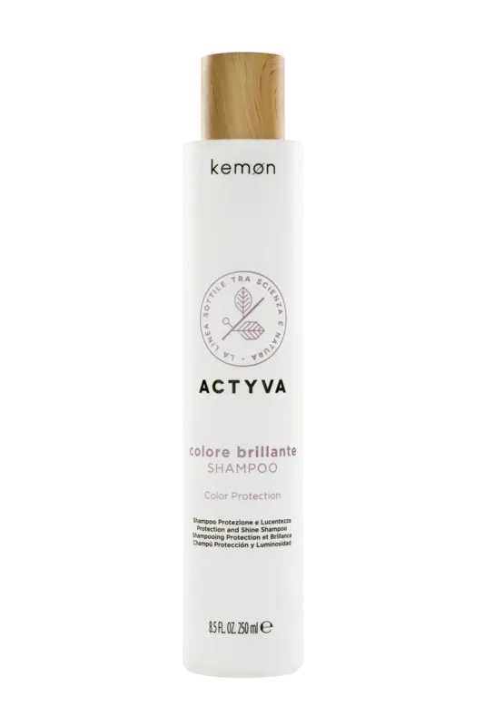 Kemon Actyva Colore Brillante Shampoo 250 ml este un șampon profesional dedicat părului vopsit, ideal pentru a menține intensitatea și strălucirea nuanței. Cu o formulă delicată și echilibrată, îmbogățită cu extracte de afine și sâmburi de vișine negre, acest șampon contribuie la protejarea culorii împotriva oxidării, susținând totodată sănătatea scalpului. Complexul Velian, bazat pe plante medicinale, adaugă un efect calmant și antioxidant. Rezultatul: un păr mai catifelat, mai luminos și ușor de gestionat, fără a compromite sănătatea fibrei capilare.