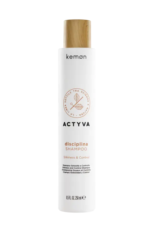 Kemon Actyva Disciplina Shampoo este soluția profesională pentru părul rebel, predispus la electrizare sau greu de aranjat. Parte a gamei Disciplina, acest șampon acționează delicat asupra scalpului și firelor, oferind hidratare și netezire fără a îngreuna părul. Uleiurile vegetale din compoziție ajută la obținerea unei suprafețe capilare uniforme și lucioase, pentru un look perfect controlat. Produsul este certificat ICEA Vegan și respectă principiile sustenabilității promovate de Kemon.