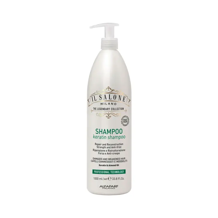 Il Salone Milano KERATIN SHAMPOO - Sampon cu Keratina pentru par deteriorat 1000 ml este special conceput pentru Par deteriorat, oferind un complex de beneficii care susțin sănătatea și vitalitatea părului. Formula sa profesională, dezvoltată de Alfaparf Milano, se bazează pe expertiza liniei Keratin din gama Il Salone Milano, cunoscută pentru eficiența sa dovedită. CARACTERISTICILE PRODUSULUI