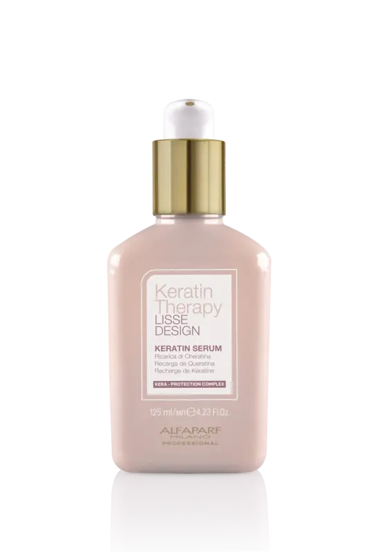 Lisse Design Keratin Therapy Keratin Serum - Ser cu keratina 125 ml din gama Lisse Design, creat de Alfaparf Milano, face parte din linia profesională Keratin Therapy, o gamă apreciată pentru formulele sale inovatoare. Acest produs este ideal pentru îngrijirea toate tipurile de păr și vine într-un format practic de 125 ml. Alfaparf Lisse Design Keratin Therapy Keratin Serum este un ser profesional destinat întreținerii părului tratat cu keratină. Textura sa ușoară și efectul de matase fac părul să arate sănătos și strălucitor. Formula fără uleiuri minerale sau parafine oferă protecție împotriva agresiunilor externe și facilitează coafarea zilnică. Textura sa adaptabilă și compoziția îmbogățită contribuie la o aplicare ușoară și rezultate remarcabile. Cu ingrediente atent selecționate, acest produs este recomandat în tratamente care combină tehnologia cu grija autentică pentru păr, pentru a reda aspectul sănătos, neted și protejat, indiferent de condițiile de mediu.