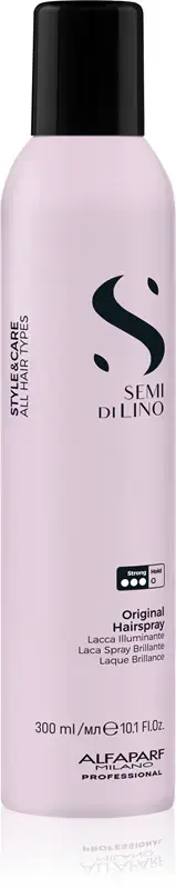 Style&Care Original Hairspray - Fixativ cu fixare puternica 300 ml din gama Semi di Lino, creat de Alfaparf Milano, face parte din linia profesională Style&Care, o gamă apreciată pentru formulele sale inovatoare. Acest produs este ideal pentru îngrijirea Toate tipurile și vine într-un format practic de 300 ml. Fixare puternica ce permite parului sa se miste. Finiseaza, controleaza si protejeaza parul, fara a-l ingreuna. Potrivit pentru toate tipurile de par. Este ideal pentru o fixare naturala, cu efect anti-frizz si stralucire. Formula vegana. Textura sa adaptabilă și compoziția îmbogățită contribuie la o aplicare ușoară și rezultate remarcabile. Cu ingrediente atent selecționate, acest produs este recomandat în tratamente care combină tehnologia cu grija autentică pentru păr, pentru a reda aspectul sănătos, neted și protejat, indiferent de condițiile de mediu.